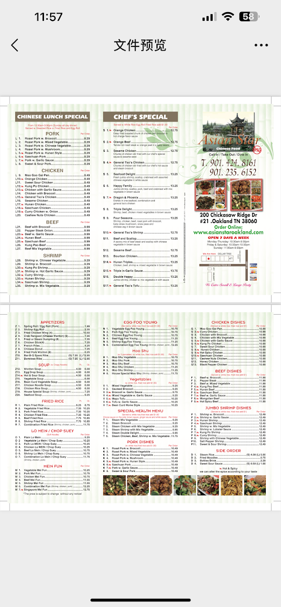 Introducing the menu at Asian Star in Oakland, TN, is a delightful journey through authentic Chinese cuisine. With a focus on freshness and flavor, the restaurant offers a diverse selection that caters to all tastes.